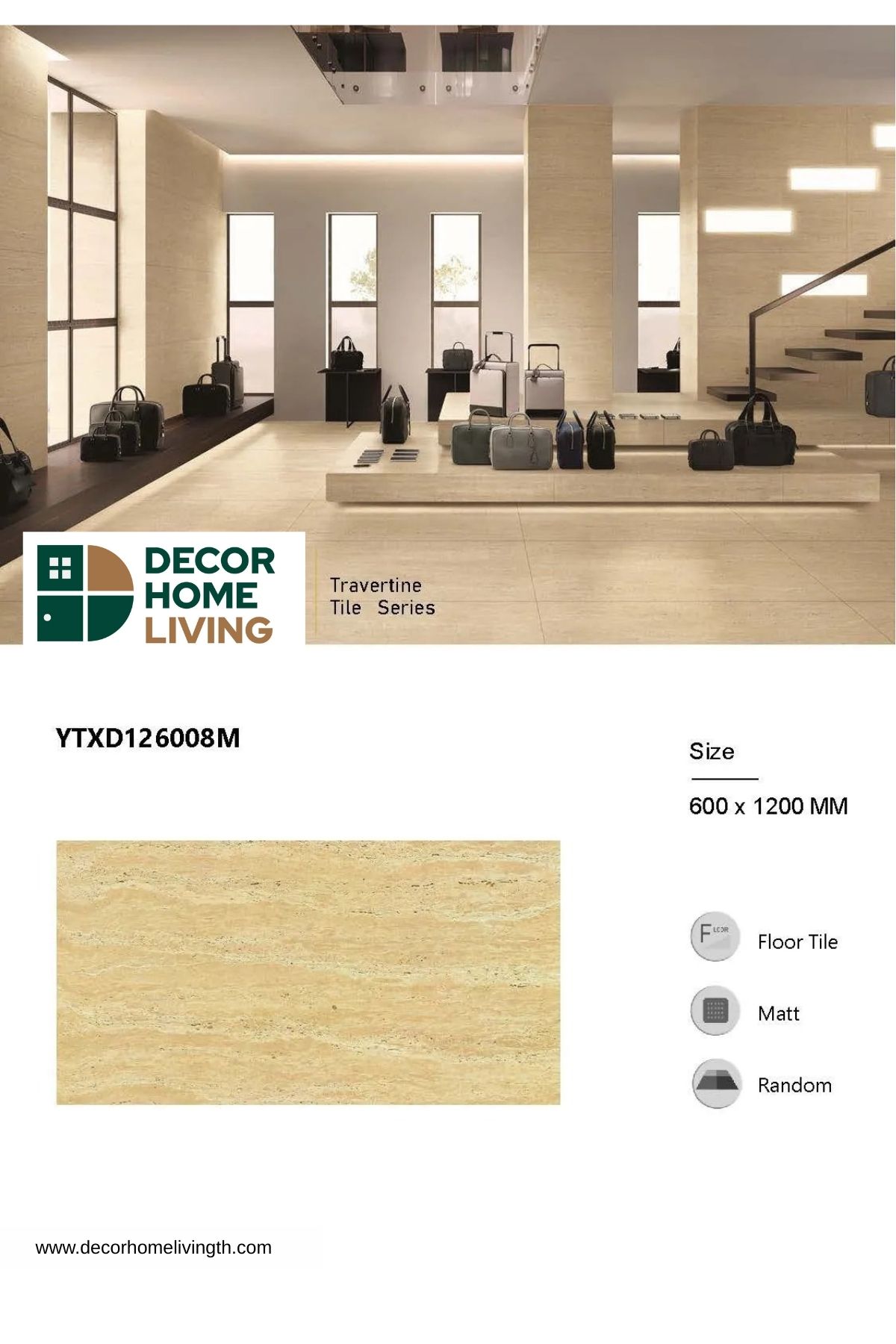 กระเบื้องพอร์ซเลนลายหินทราเวอร์ทีน เนื้อแกรนิตโต้ Porcelain travertine tile